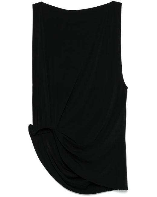 Zwart brede hals mouwloos gedraaide details Size: S. Gender: Female. Material:Polyester/Viscose/Elastane. Kleur: zwart