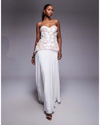 Ga naar ASOSJurken van Jarlo Bandeau-model Geborduurde bloemen op het lijfje Ritssluiting op de rug Contrastrok Regular fit Kleur: blauw