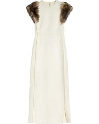 Ga naar FARFETCHKaki verborgen ritssluiting aan de zijkant ronde hals rechte zoom flared-fit Size: 38. Gender: Female. Material:Viscose/Viscose. Kleur: naturel