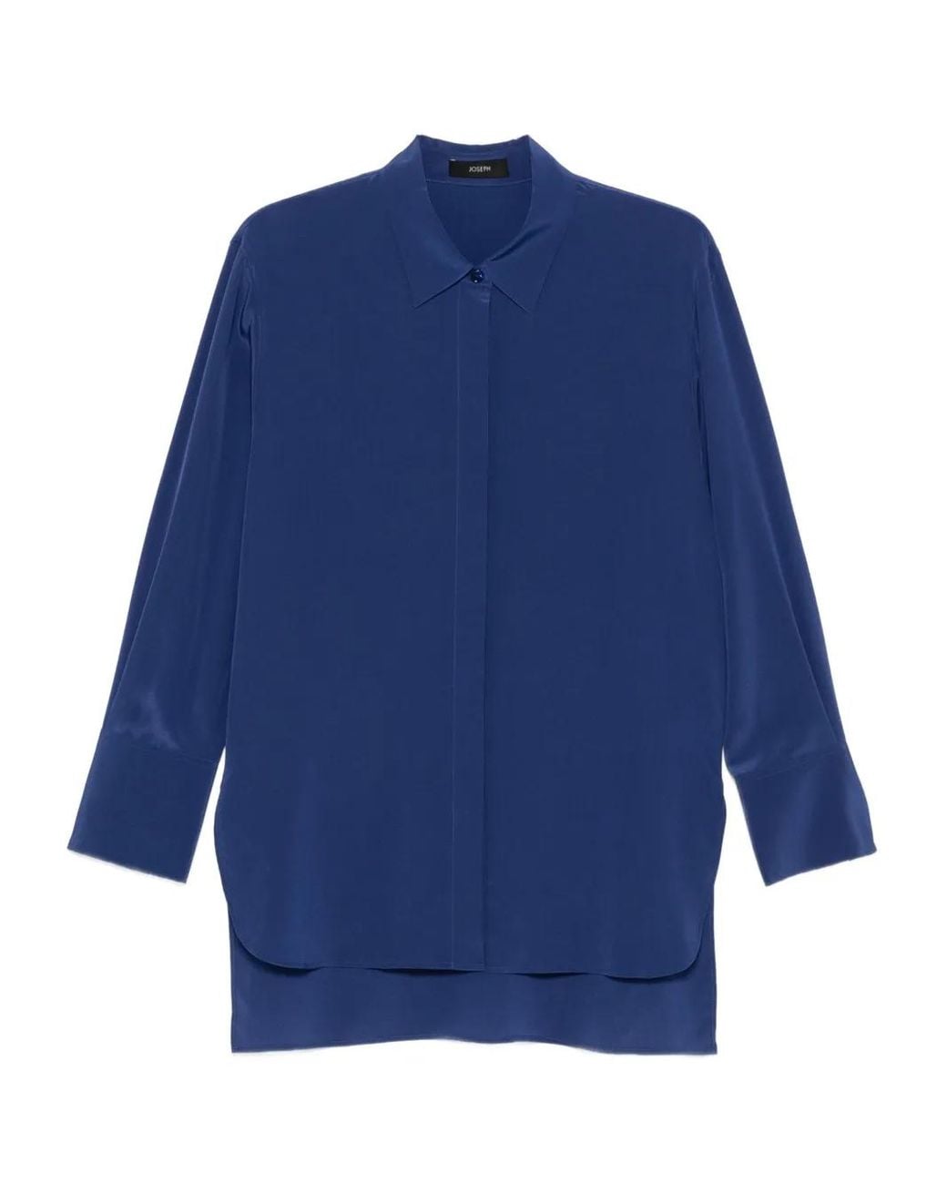 Blauw zijde knoopsluiting gewelfde zoom kraag Size: 36. Gender: Female. Material:zijde. Kleur: blauw