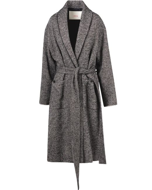 Lange jas in gemengde wol. Geshockeerde nek. Enkelborstsluiting met knop. Twee zakken aan de voorkant. Intern. Compleet met bijpassende riem in stof. Achterkant. Samenstelling: 34% polyester; 31% acryl; 25% wol; 4% andere vezels; 3% alpaca; 3% polyamide. Fit: normaal. Gemaakt in Italie. Het model draagt een maat 40 en is 175 cm hoog. Een veelzijdig en warm kledingstuk, perfect voor de winter met elegantie. Kleur: grijs