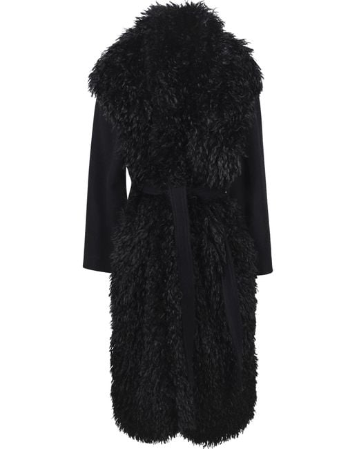 Coat met frontplaat in ecopelliccia. Mouwen en rug gemaakt van maagd wol mengsel. Sjaalhals. Sluiting met bijpassende stofriem in de taille. Ik schiet de bodem in de rug. Samenstelling stof: 75% vierge wol; 25% polyamide. Fit: normaal. Gemaakt in Italie. Het model draagt een maat 40 en is 175 cm hoog. Een statement head die de elegantie van de wollen vacht combineert met de gedurfde en warme vacht. Kleur: zwart