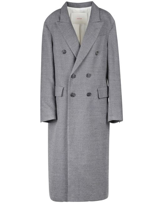 Dubbelborst jas in flanel. Klassieke halsband. Schouders uitglijden. Lange mouwen. Dubbelborstsluiting met knopen. Twee zakken aan de voorkant. Een groot gat achterin. Binnenste voering. Hoofdstofsamenstelling: 98% Lana Vergine; 2% Elastan. Samenstelling voering: 100% Viscose. Fit: breed. Gemaakt in Italie. Het model draagt een maat 38 en is 175 cm hoog. Een essentieel en verfijnd kledingstuk voor de winter met elegantie. Kleur: grijs
