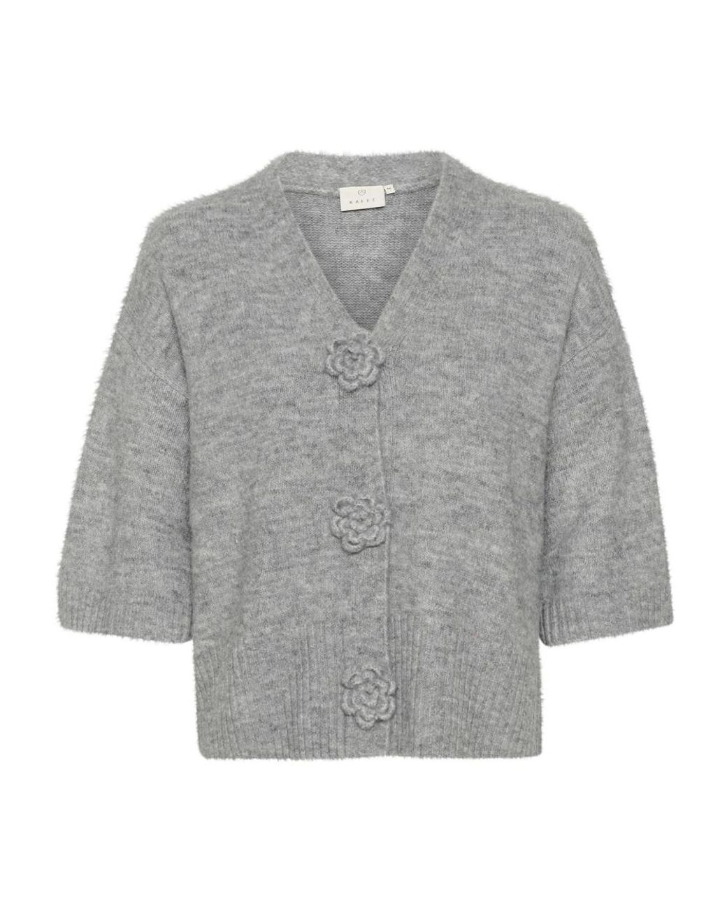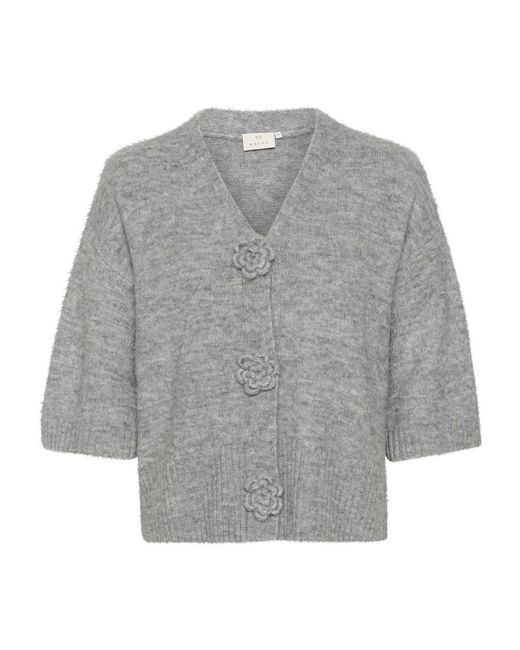 Truien & Vesten ,Grijs ,Polyester Grijze Melange Cardigan Met Bloemen voor dames