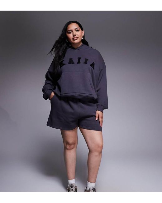 Shorts van Kaiia Deel van een combi-set Hoodie wordt apart verkocht Hoge taille Tailleband met trekkoord Steekzakken Geborduurd logo Regular fit Kleur: paars