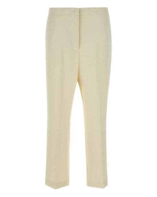 Beige haak- en ritssluiting aan de voorkant steekzakken aan de zijkant high waist paspelzak aan de achterkant toelopende pijpen Size: 40. Gender: Female. Material:Spandex/Elastane/Polyester. Kleur: naturel