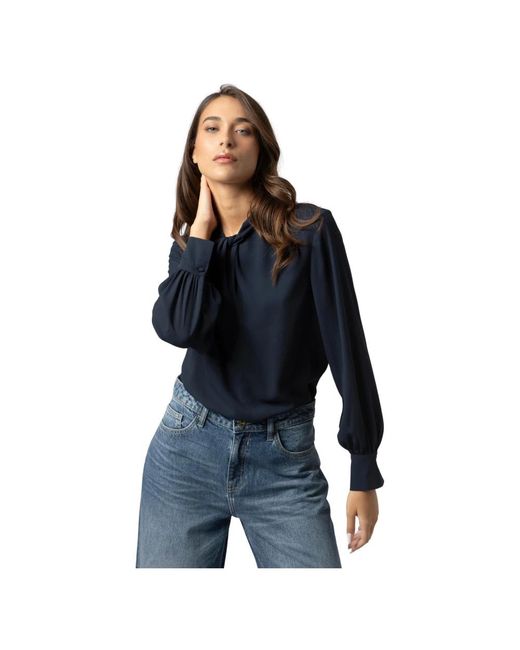 Overhemden ,Blauw ,Zijden Blouse Met Lange Mouwen En Zonder Kraag voor dames