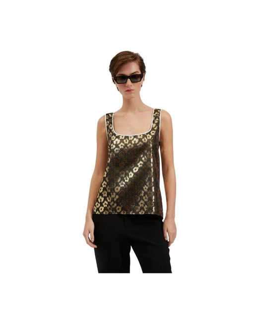 Maak kennis met de Twirl Top van La Double J, een veelzijdige toevoeging aan je garderobe. Deze mouwloze top heeft een eenvoudig silhouet met een V-hals en brede schouders, perfect om te combineren met elke outfit. Belangrijkste kenmerken: Luipaard Chine | Geel | 47% polyester, 29% zijde, 24% metallic | V-hals | brede schouders | Samenstelling en onderhoud: 47% polyester | 29% zijde | 24% metallic Kleur: groen