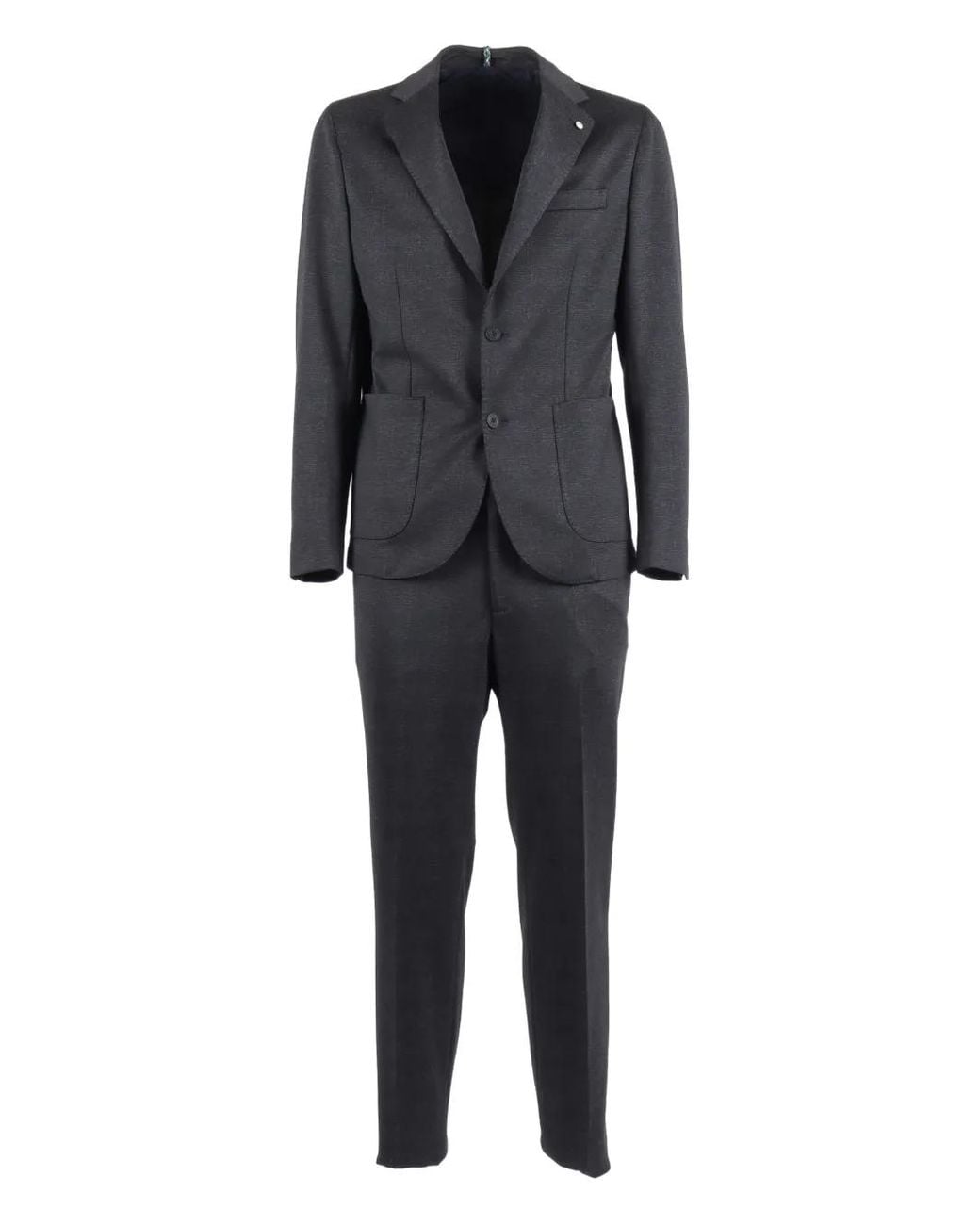 Donkergrijs knoopsluiting klepzakken getailleerde fit Size: 48. Gender: Male. Material:Polyester/Viscose/Spandex/Elastane. Kleur: zwart