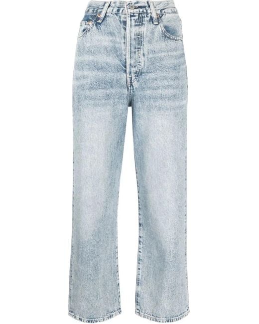 Whisker-effect bij de heupen, contrasterende stiksels, traditionele 5-zakkenmodel, straight-fit, riemlussen en knoopsluiting aan de voorzijde. Materiaal: gemixt katoen. Size: 29. Gender: Female. Material:katoen/lyocell. Kleur: blauw