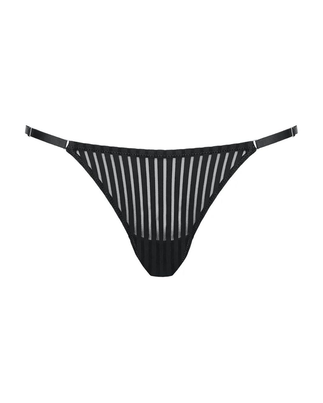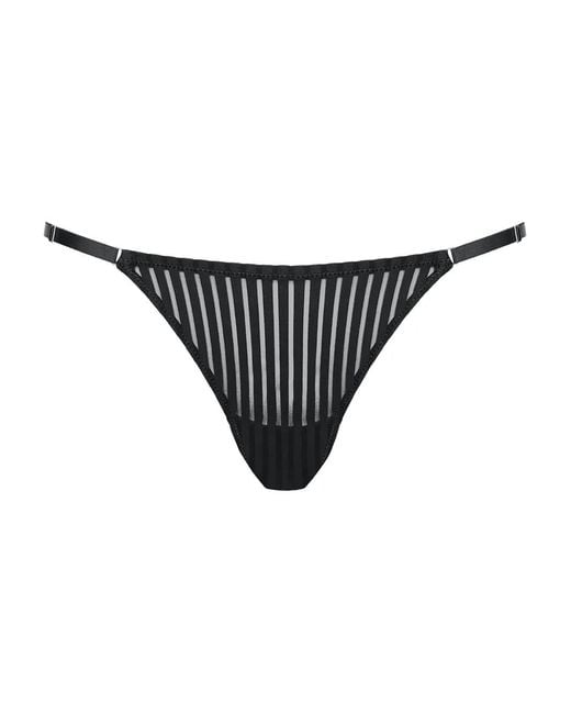 Gestreepte string van Maison Close voorzien van string en gestreept patroon. Ondergoed en lingerie moeten over uw eigen kleding aan worden gepast. Size: XS. Gender: Female. Material:polyamide/Spandex/Elastane. Kleur: zwart