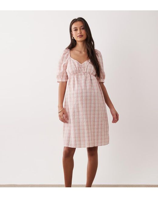 Maternity van Mama.licious Geruit model Diepuitgesneden hals Pofmouwen Open achterkant Regular fit Kleur: roze