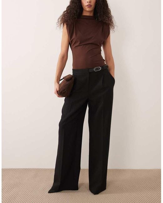 Broeken en leggings van Mango Gesp detail Taille-riem Steekzakken Plooi in het midden Wijde pijpen Kleur: zwart