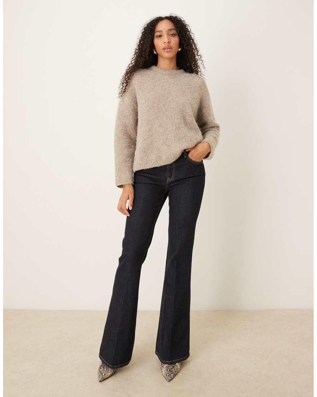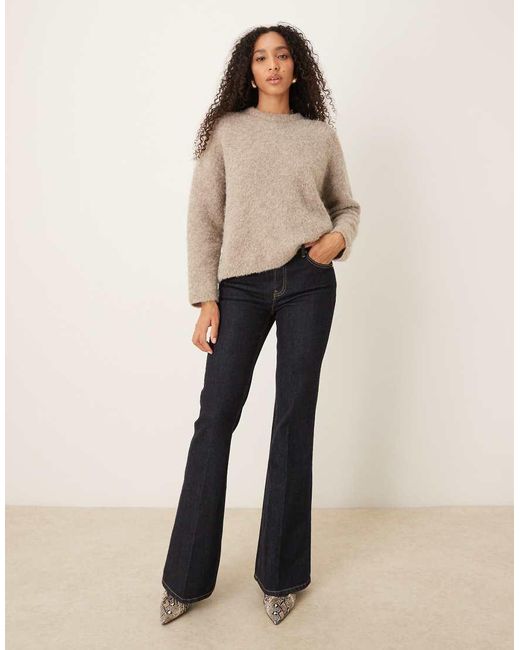 Jeans van Mango Skinny fit met flares Contrasterende stiksels Hoge taille Riemlussen Blinde ritssluiting Met vijf zakken Geperste vouwen bij de pijpen Kleur: naturel