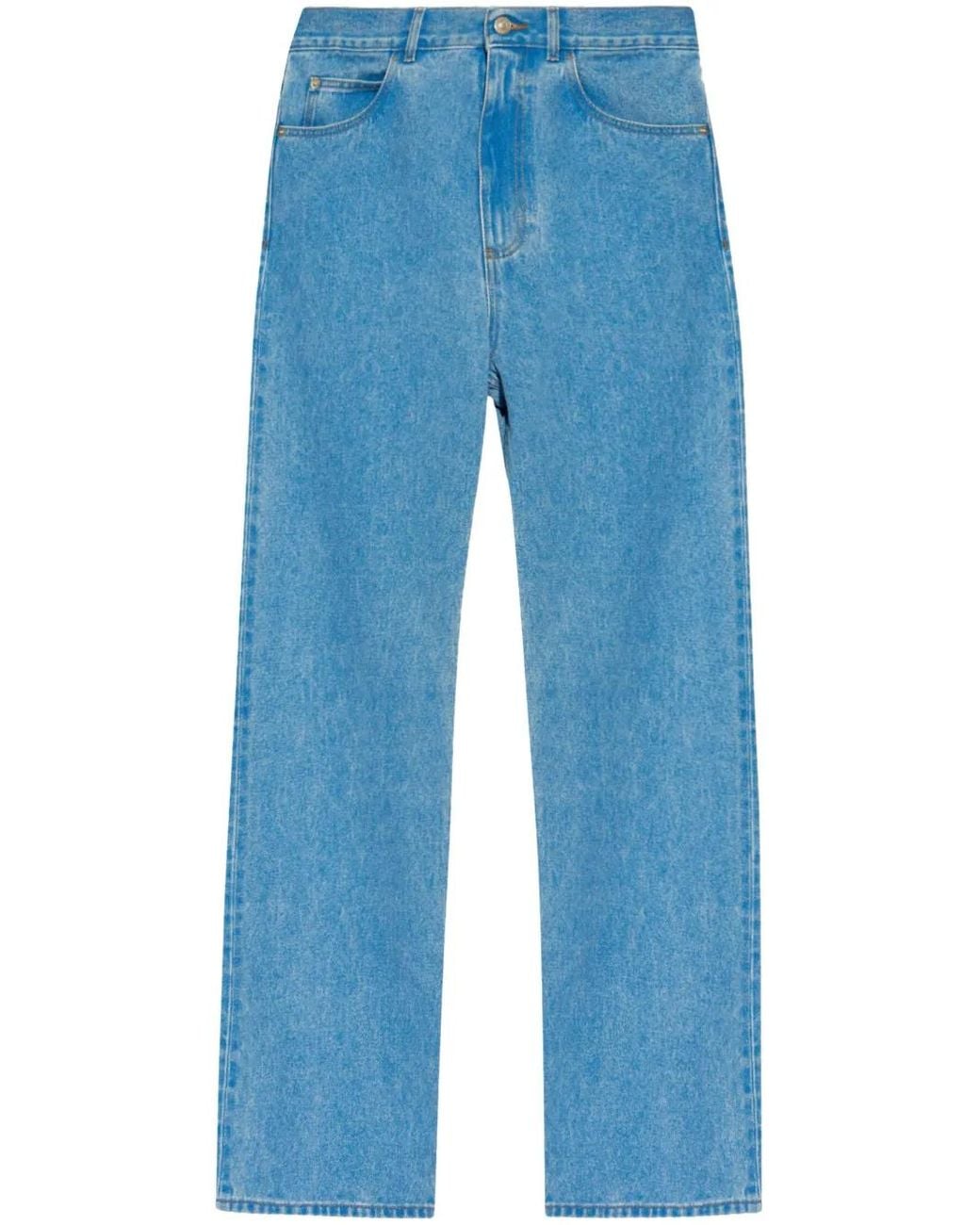Poederblauw katoen logopatch aan de achterkant riemlussen knoopsluiting aan de voorkant traditioneel vijf zakkenmodel rechte pijpen Size: 29. Gender: Male. Material:katoen. Kleur: blauw