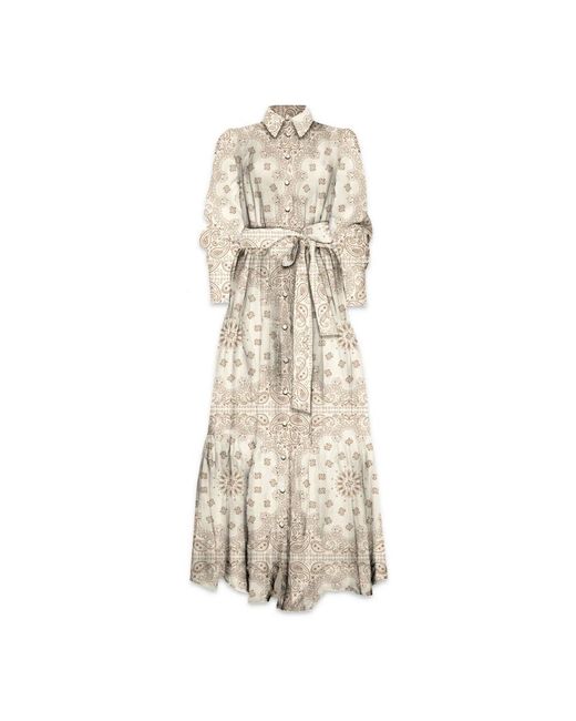 Kleedjes Bandanna Print Jurk Met Lange Mouwen in het naturel voor dames