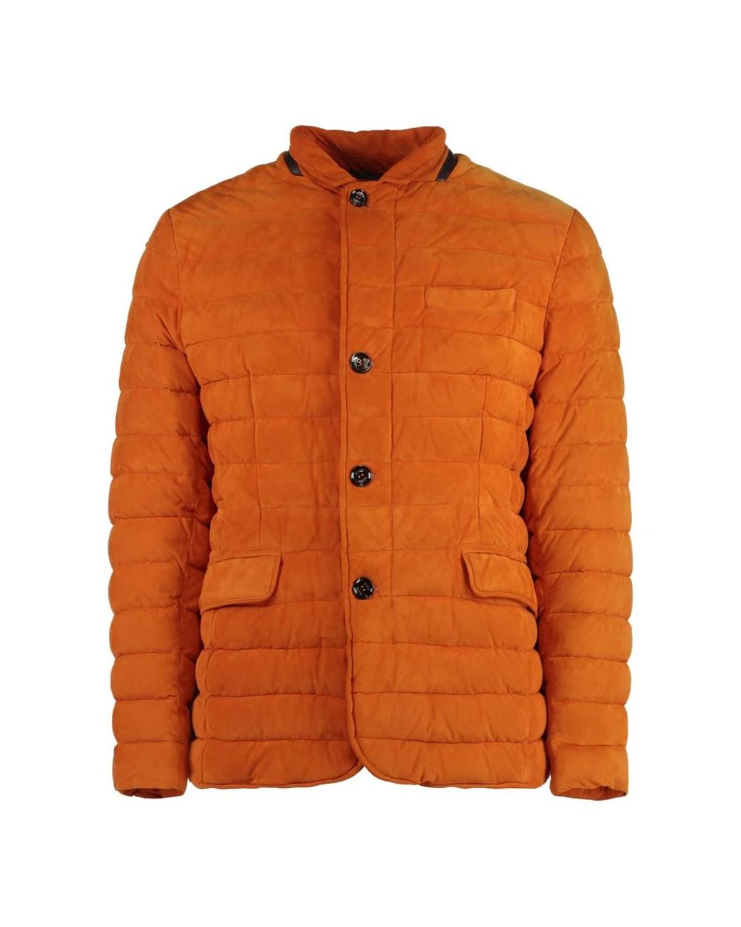 Jassen ,Oranje ,Leren Gewatteerde Jas Met Ganzendons voor heren