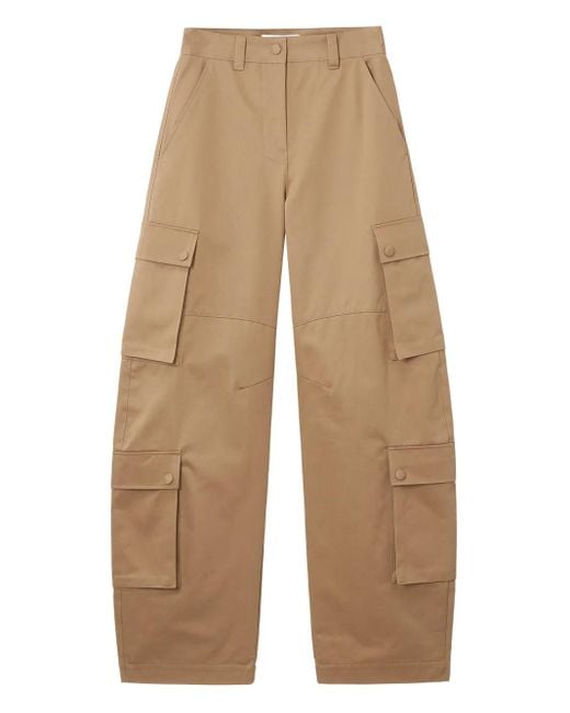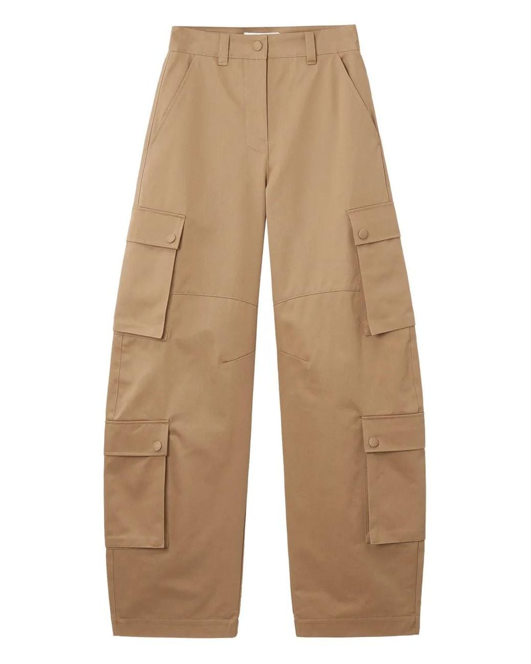 Beige katoen knoopsluiting meerdere zakken wijde pijpen riemlussen Size: 36. Gender: Female. Material:katoen. Kleur: naturel
