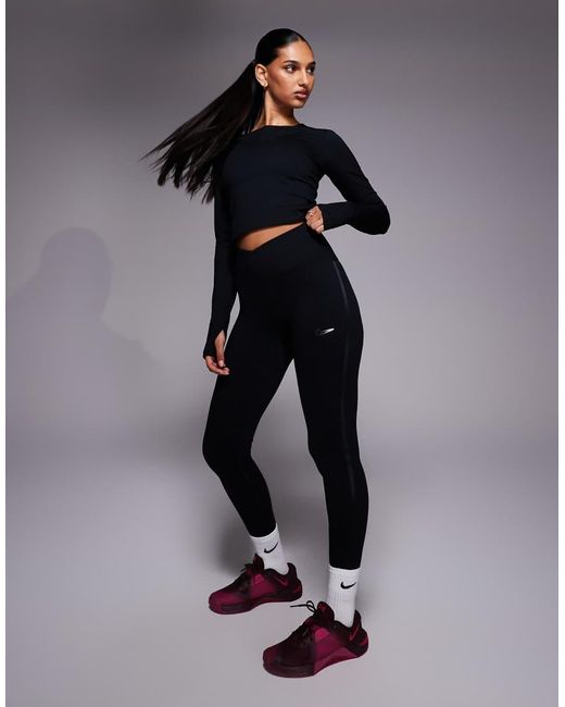Broeken en leggings van Nike Training Ontwerp met merkteken Hoge taille Elastische tailleband Met overslag aan de voorkant Bodycon pasvorm Kleur: blauw