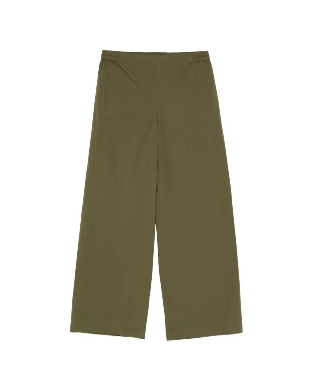 Donkerolijfgroen elastische tailleband zijzakken Size: S. Gender: Female. Material:katoen/Elastane. Kleur: groen
