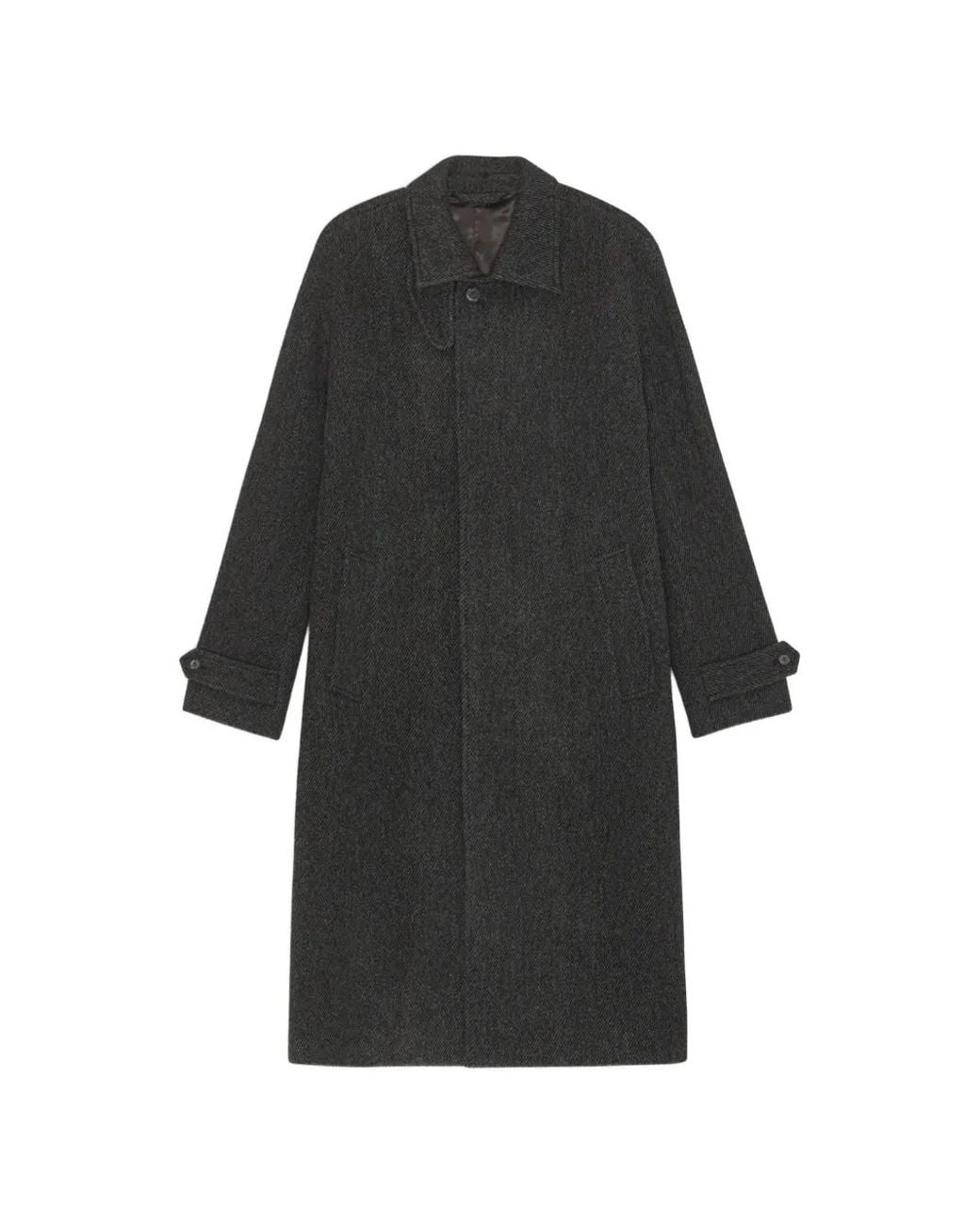 Antraciet visgraat patroon knoopsluiting voorklepvakken knoopmanchetten enkele split aan de achterkant Size: M. Gender: Male. Material:wol/polyamide. Kleur: zwart