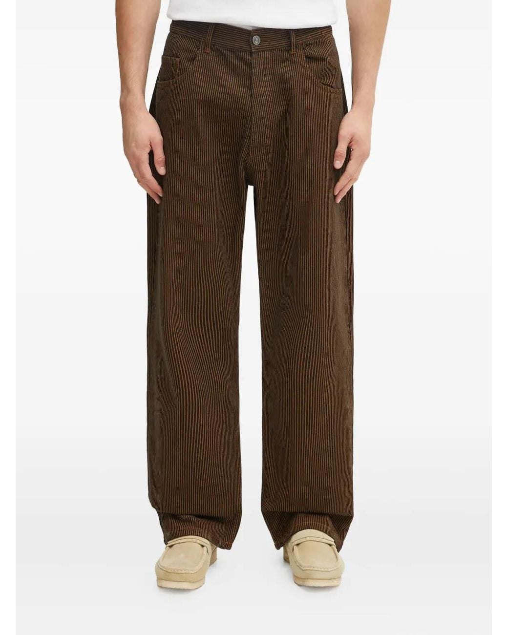 Bruin gestreept patch aan de achterkant vijf zakken riemlussen knoopsluiting Size: 30. Gender: Male. Material:katoen. Kleur: bruin