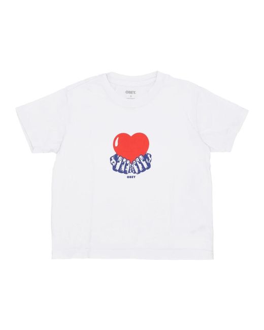 Blijf stijlvol en comfortabel in dit Obey dames t-shirt met korte mouwen en ronde hals. Voorzien van een zachte pasvorm en zeefdruk aan de voorkant, is dit shirt van 100% katoen geschikt voor handwas of machinewas (lees het label). Kleur: wit