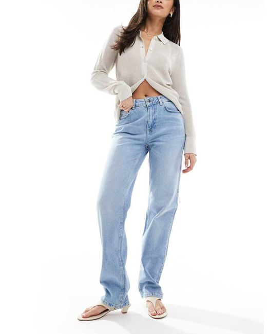 Jeans van Object Rechte pasvorm Hoge taille Riemlussen Blinde ritssluiting Met vijf zakken Merkpatch op de achterkant Kleur: blauw