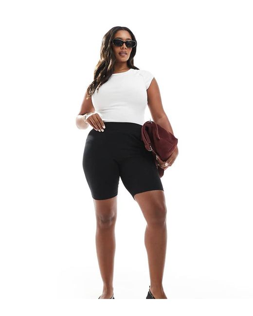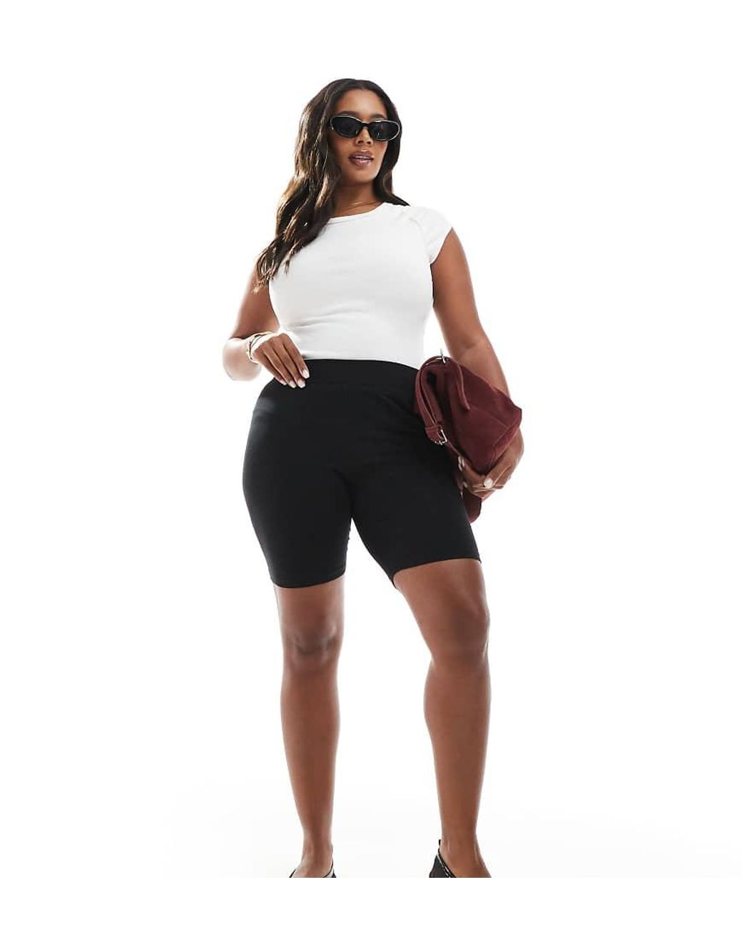 Shorts van Only Curve Effen model Hoge taille Elastische tailleband Bodycon pasvorm Kleur: zwart