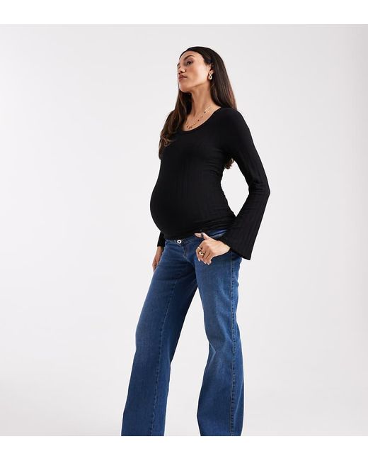 Jeans van ONLY Maternity Wijde broekspijpen Riemlussen Praktische zakken We willen je laten weten dat het model een buik van schuim draagt De buik is 52cm breed van zij tot zij Kleur: blauw