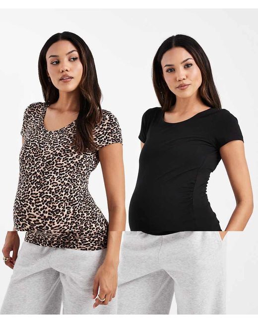Tops van ONLY Maternity Set van twee stuks Ronde halslijn Korte mouwen Regular fit Kleur: zwart