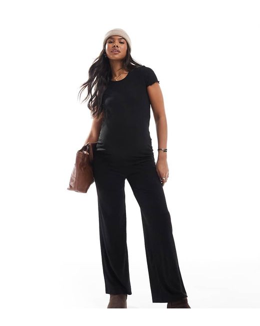Broeken en leggings van Only Maternity Het uniform van vandaag Elastische tailleband Wijde pijpen Ontworpen om je te passen van buik tot baby We willen je laten weten dat het model een buik van schuim draagt De buik is 52cm breed van zij tot zij Kleur: zwart