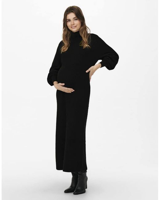 Jurken van Only Maternity Hooggesloten hals Blousonmouwen Regular fit Kleur: zwart
