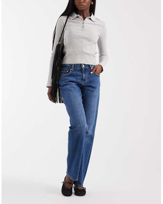 Jeans van Only Rechte pasvorm Lage taille Riemlussen Met vijf zakken Merkpatch op de achterkant Kleur: blauw