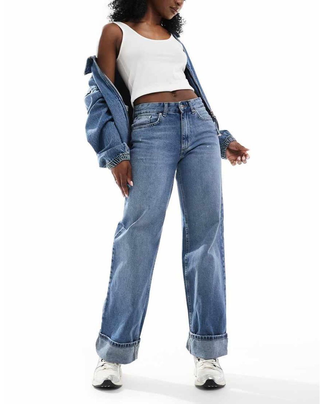Jeans van Only Wijde pijpen Normale taille Riemlussen Met vijf zakken Kleur: blauw