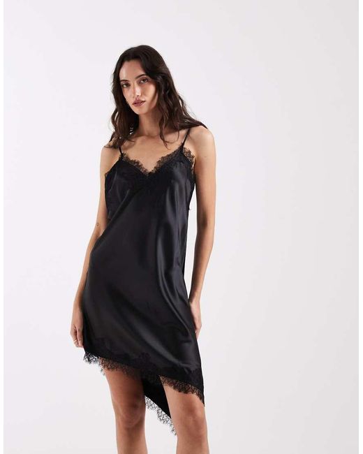 Asymmetrische Satijnen Cami-Jurk Met Kanten Zoom