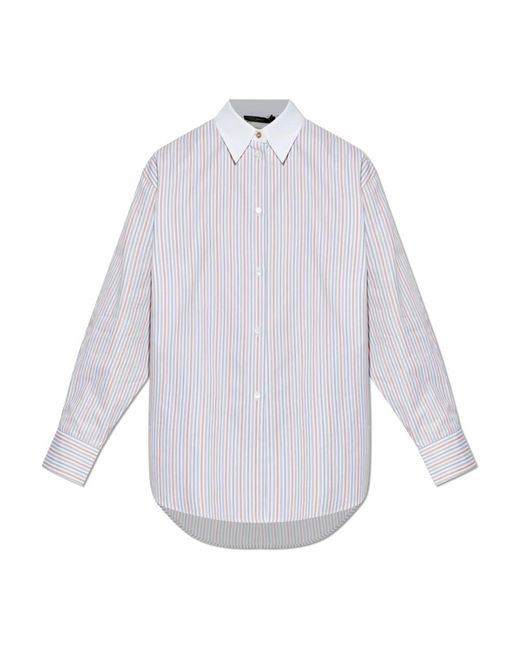 Het Paul Smith Oversize Shirt brengt een ontspannen, modern silhouet naar een verfijnd garderobe-item. De oversized snit en subtiele verticale streepdetails maken het ideaal voor gepolijste casual looks. Belangrijkste kenmerken: Wit | Lichtbruin | Blauw | Grijs | Katoen | stof | Zachte glans | Knoopsluiting | Lange mouwen | Klassieke kraag | Verlaagde schouder | Verticaal streepdessin | Rugpas met diagonale zigzagstrepen | Manchetten met knopen | Afmetingen & pasvorm: Lengte: 177cm | Borst: 83cm | Taille: 61cm | Heupen: 89cm | Model draagt maat: 40 | Oversized pasvorm | Losse, langgerekte snit | Licht verlaagde schouders voor een ontspannen silhouet | Samenstelling & verzorging: 100% katoen | Machinewas op 30°C Kleur: wit