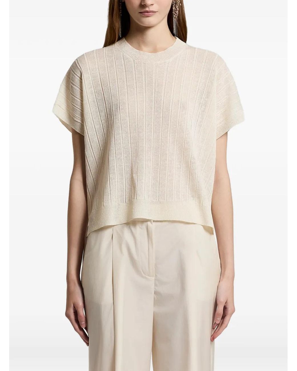 Ribgebreide Trui Met Korte Mouwen in het naturel voor dames