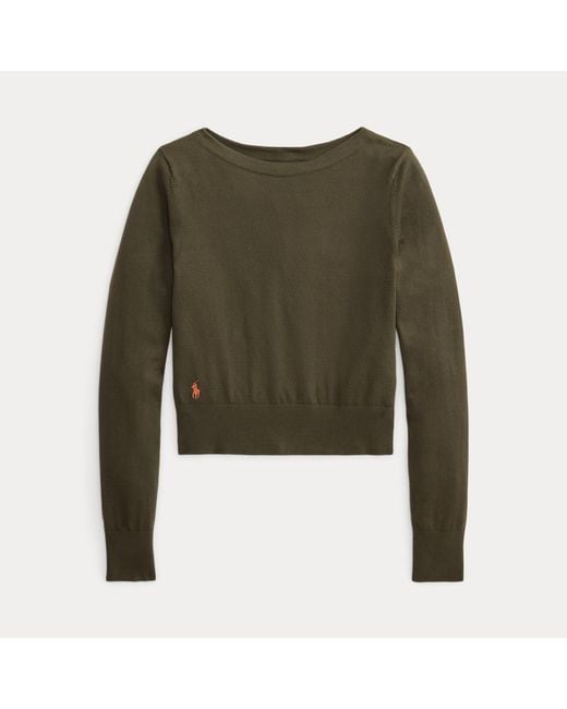 Trui Met Boothals Van Katoenmix in het groen voor dames