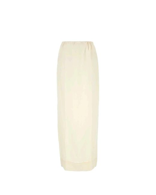 Ontdek de elegantie van de Prada Maxi Rok, vervaardigd uit premium linnen voor een verfijnde look. Perfect voor de moderne vrouw die op zoek is naar tijdloze stijl. Belangrijkste kenmerken: Wit | Beige | Linnen | Maxi lengte | Wapperend silhouet | Afmetingen en pasvorm: Normale pasvorm | Samenstelling en onderhoud: 100% Linnen | Uitsluitend chemisch reinigen. Kleur: naturel