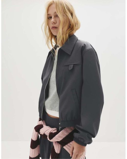 Jassen & Jacks van Pull&Bear Effen model Brede kraag Ritssluiting Drie praktische zakken Elastische manchetten en zoom Ruimvallende snit Kleur: grijs