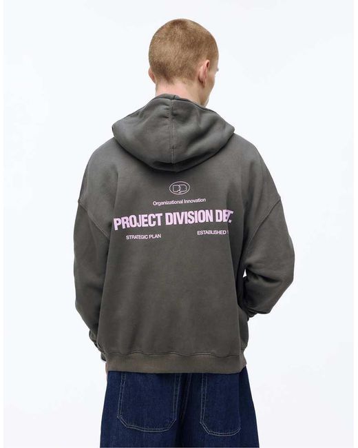Hoodies en sweatshirts van Pull&Bear Vaste capuchon Ritssluiting Verlaagde schouders Lange mouwen Steekzakken Geribbelde boorden Rechte pasvorm Ruimvallende snit Kleur: grijs