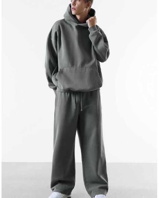 Joggingbroek van Pull&Bear Tailleband met trekkoord Praktische zakken Geborduurd logo Ruimvallende snit Kleur: grijs