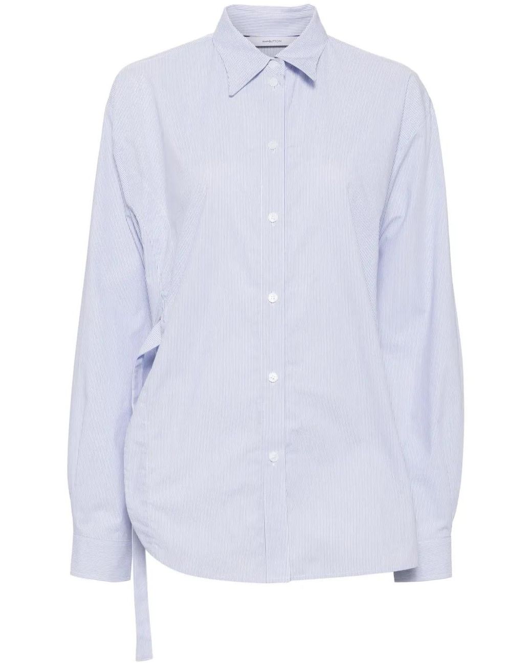 Blauw/wit katoen krijtstrepen zijsplit popeline textuur klassieke kraag lange mouwen knoopmanchetten knoopsluiting aan de voorkant gespsluiting aan zijkant afgeronde zoom Size: S. Gender: Female. Material:katoen. Kleur: wit