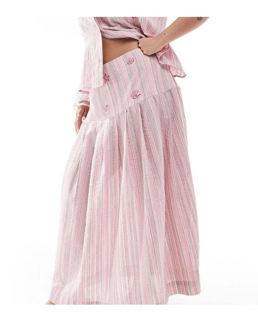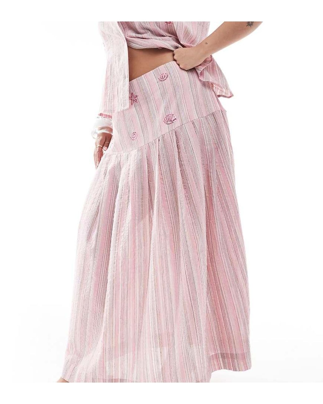 Rokken van Renee Studio Exclusief bij Asos Gestreept model Hoge taille Ritssluiting op de rug Versierd met pailletten Regular fit Kleur: roze