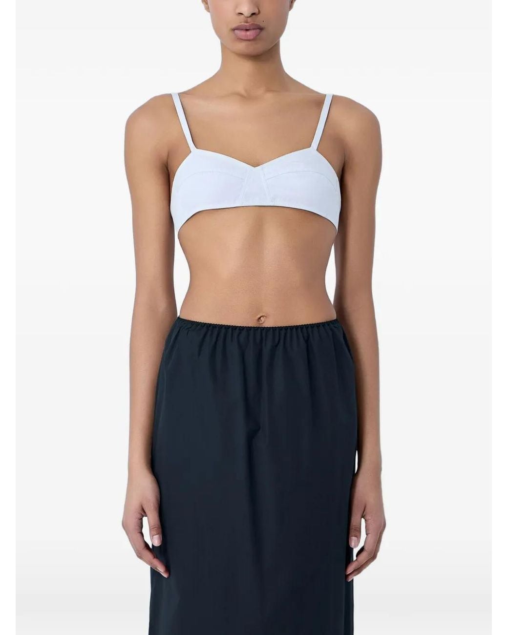 Wit voorgevormde cups verstelbare schouderbandjes elastische band smalle bandjes Size: S. Gender: Female. Material:katoen. Kleur: blauw