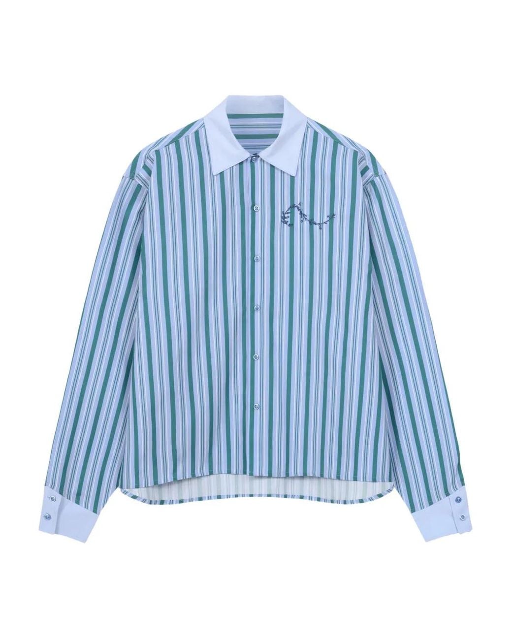 Groen/wit klassieke kraag knoopsluiting geborduurd logo lange mouwen afgeronde zoom Size: XS. Gender: Male. Material:katoen. Kleur: blauw