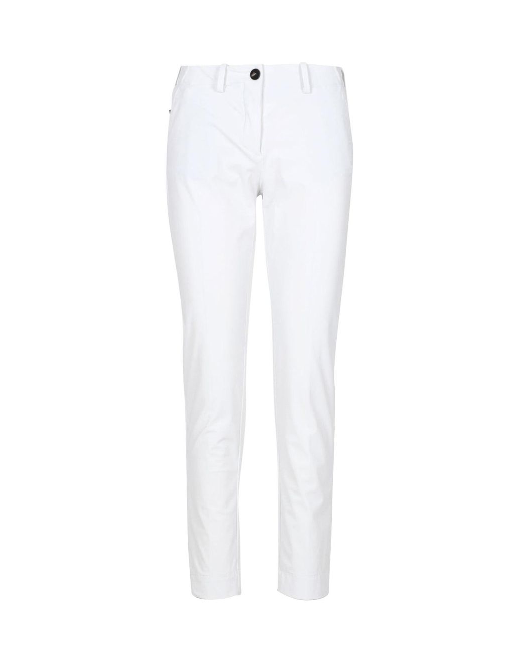 Katoen - Hoge taille - Zip- en knoopsluiting - Zakken - Sigarettenbeen. Kleur: wit