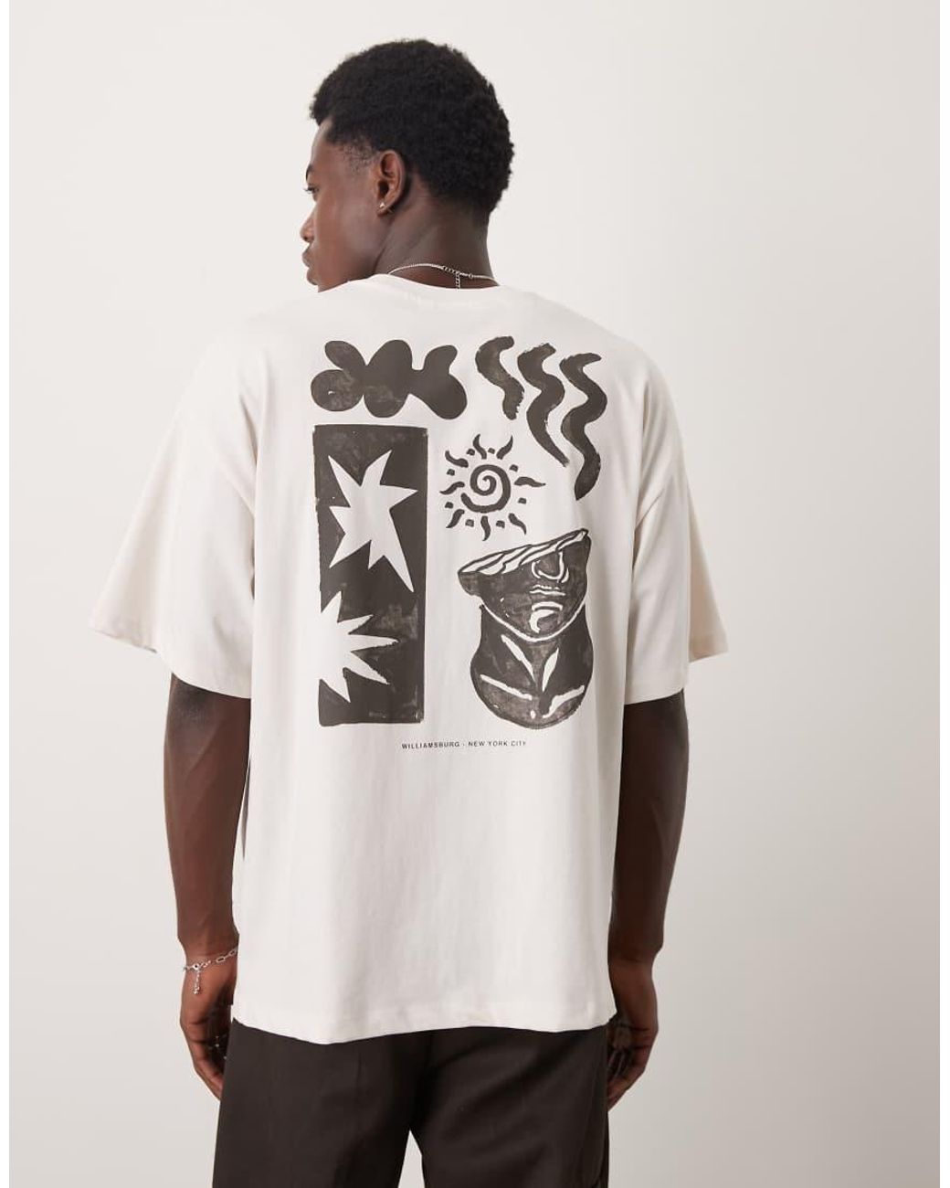T-Shirts en hemdjes van Selected Homme Met ronde hals Verlaagde schouders Korte mouwen Tekstprint en grafische print op de voorkant Grafische print op de rug Oversized pasvorm Kleur: naturel