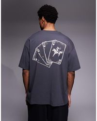 Ga naar ASOST-Shirts en hemdjes van Selected Homme Met ronde hals Verlaagde schouders Korte mouwen Botanische grafische print op de achterkant Oversized pasvorm